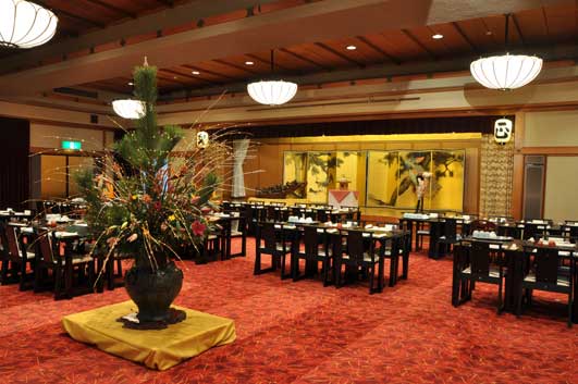 お正月期間に游月山荘にご宿泊のお客様は、この宴会場でのご朝食となります。