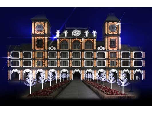 音と光による演出の他、シャンパングラスやヨーロッパの街並みを再現したイルミネーションは