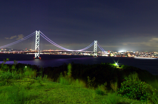 明石海峡大橋(通称:パールブリッジ)の橋の上!ここからの眺めは爽快です!