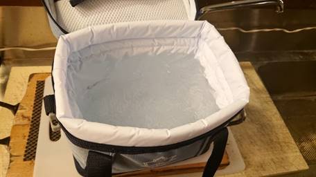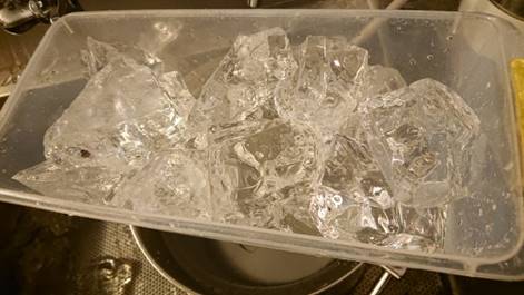 水を入れたクーラーボックスのフタを開けた状態で冷凍庫に入れるのですよ