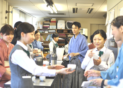 客室の方々が美味しくお茶を入れる為の勉強会ですね♪