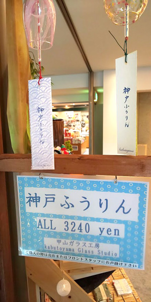 兵庫県西宮市の緑に囲まれたところにある吹きガラス工房「甲山ガラス工房」でつくられた風鈴です。