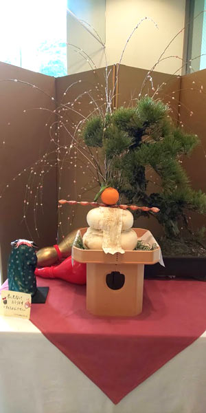 ここで新春の館内の飾り付けやお餅つきの様子をご紹介させて頂き、