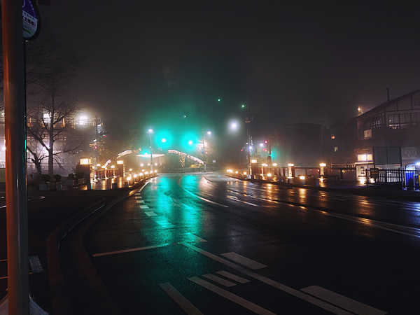 板張り(?)の地面と背の低い灯りの反射具合が絶妙です。