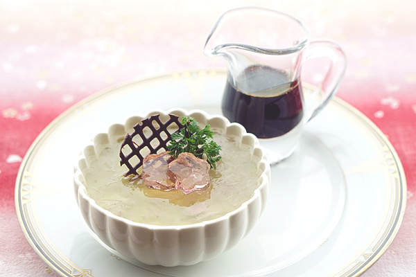 花びらは桜リキュール入りのちょっと大人のゼリー!