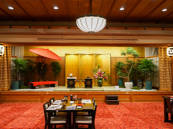 游月山荘のお食事会場では、