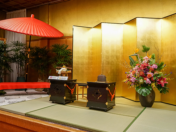 お正月期間限定で舞台にお写真撮影用のセットをご用意しております。