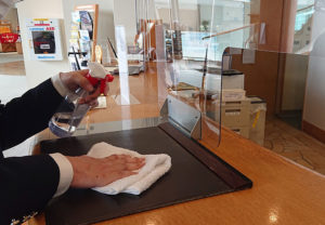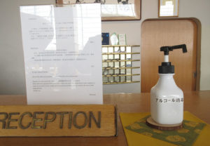 - カウンターや筆記具は、常にアルコール消毒液を使用し清潔に保っております。