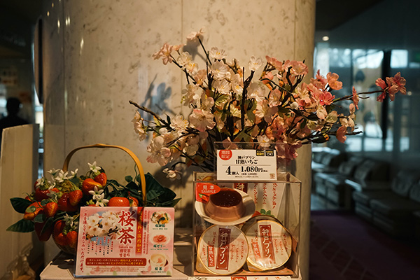 游月山荘フロントにはすでに咲いている桜も!?