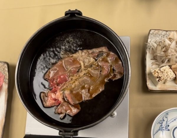 そして当館では割り下を使用して肉を焼く、上記の中間のようなオリジナルのスタイルです。