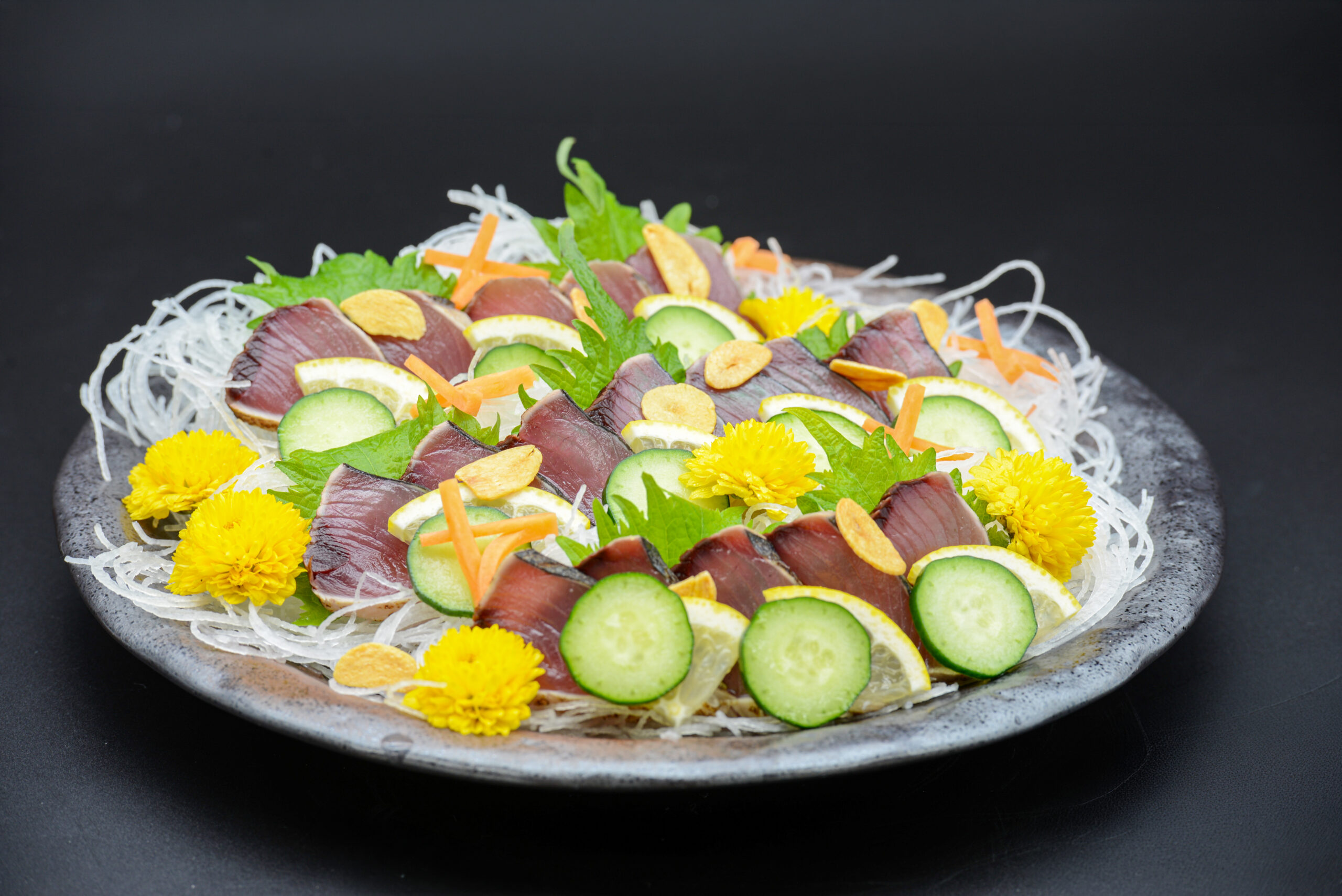 香ばしく炙った初鰹をお造りでご用意いたしました。