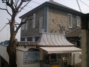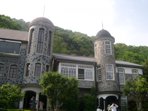 有馬温泉から異人館へは、神戸電鉄有馬温泉駅⇒有馬口⇒谷上(新開地行き)⇒北神急行で新神戸駅というルートでまいります。新神戸駅からは近く、坂を登っていくとございます。 特に神戸市の北野町山本通にその住宅が多数残っていて、1977年に放送されたNHK連続テレビ小説『風見鶏』などで広く知られるようになったようです。そしてその一部が公開され、神戸の観光名所となりました。 昭和55年にこの北野町山本通は、種別『港町』として最初に重要伝統的建造物群保存地域に選定されました。平成7年早朝に発生した阪神淡路大震災で異人館も大きな被害を受け、異人館の約3割が損壊したそうですが、40棟余りがまだ現存しており、保存措置が講じられております。「異人館通り」と言えば山本通の別称です。 神戸市の異人館はこの北野山本通りがもっとも有名ですが、JR塩屋駅の山手、ジェームス山と呼ばれるエリアにもございます。こちらのエリアは昭和初期にイギリスの貿易商でしたアーネスト・ウィリアム・ジェームス氏により外国人居留・別荘として建てられたものが主となっており、現在でも多くの外国人の方が住まれております。こちらは観光地化されておりません。 過去の異人館取材はこちら>>【ベンの家】 平成19年5月29日 有馬温泉月光園 門口 |