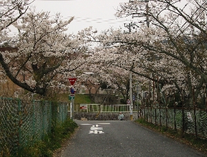 この切手文化博物館を越えた辺りで撮ったのが上の写真で、細い道路の両側に桜があり非常に綺麗です。