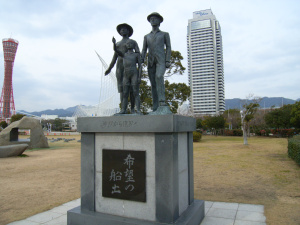 神戸のメリケンパークに、希望の船出と題するモニュメントがあります。