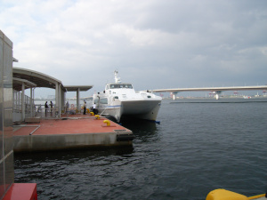 そして片道1,500円を支払い7月よりスタートしたばかりのベイシャトルに乗り込みます。 かつてポートアイランドと関空を結んでいたK−JETという船がありました。 ベイシャトルとは船体が変わっていますが、コンセプトはどこかしら一緒なのでしょう。 船内では昔、K-JETに乗ったときのことを思い出して、懐かしい気持ちになりました。