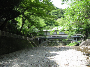 月光橋の下に流れる川は滝川と言いまして、有馬川の上流に当たります。