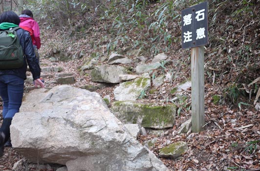 落石は主に冬に凍った氷が解ける際に起こることが多いそうなのですが、落石注意の看板の近くに