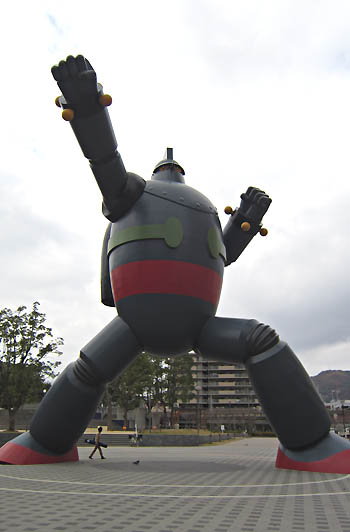 【鉄人28号の巨大モニュメントが、力強いポーズで生まれ変わった長田の町を見守っています。