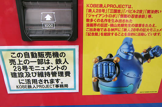 ※新長田のあちこちにある自販機には、こうした広告が貼ってあります。