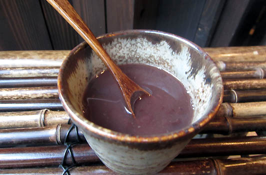 小豆の甘さを殺さないように、時間をかけて作るこのお汁粉はとても美味しいです。
