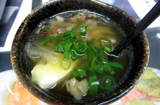 淡路島の玉葱・三田牛のすじ肉・新鮮な葱に、柔らか豆腐を入れた美味しいお出汁のスープです♪