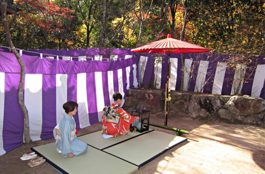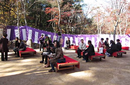 ※赤い美しい紅葉が舞い落ちる中、天幕の中には穏かな一時を楽しむ方々がいらっしゃいました。