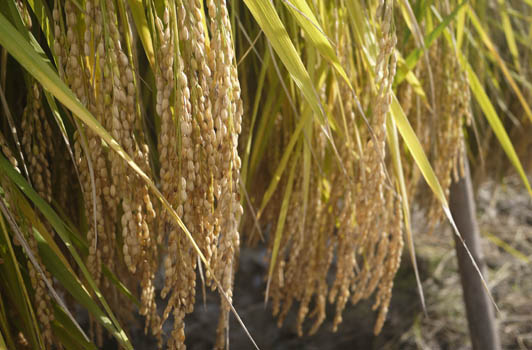 刈った稲は鉄棒のように組み立てられた棒に干され、約10日間ほど天日で干されます。