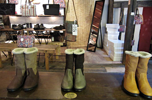 ※秋と初冬に基づいて、履き心地と防寒性も良い暖色系の靴が店内には並んでいました。