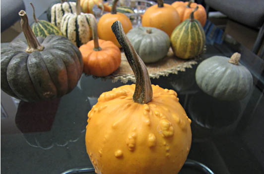 この写真のカボチャ達は、秋の間だけ月光園の館内に飾られています。