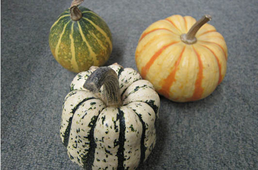 ※大小様々な色と形の「おばけかぼちゃ」、見た目も可愛らしいカボチャです!