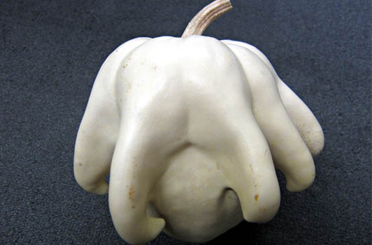 ※ルミーナ(Lumina)という白い表皮にオレンジ色の果肉の珍しいカボチャ、更にその奇形カボチャです・・・どうやってこんな形になったんだろうか;