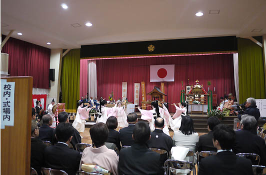 ※有馬小学校講堂で行われた入初式の本番、芸妓さん達が今年最初の源泉湯を祀ります。