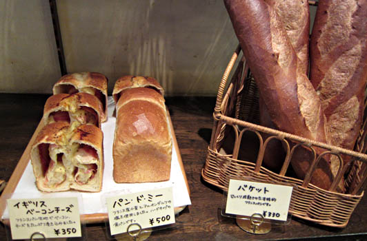 「丹波黒豆パン」、「カツサンド」、「デニッシュ食パン」が売られています。
