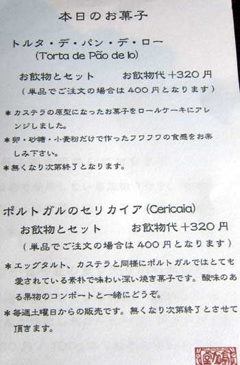 なんでも、店長さんがお店を持ったというのを聞いたポルトガルの友人が、看板を作って送ってくれたそうです。