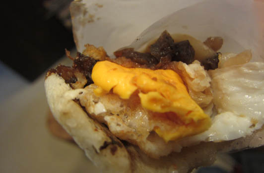 独特の生地のクレープに、三田牛のすじと卵、こんにゃくと葱が相性抜群。