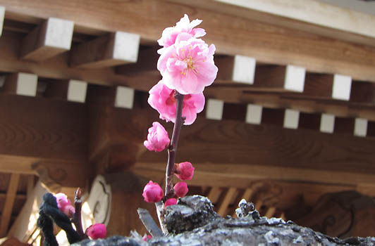 この梅の木は【未開紅(みかいこう)】と呼ばれ、樹齢200年以上の紅梅です。