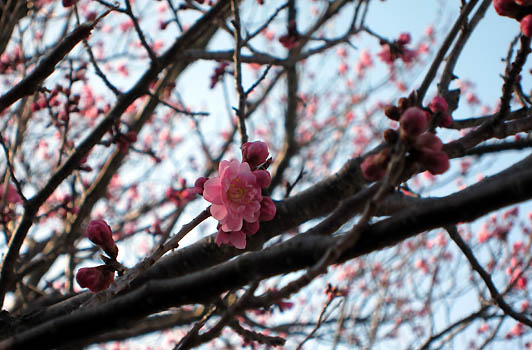 そこにある珍しい梅が、例年より約1ヶ月遅れで開花しました。