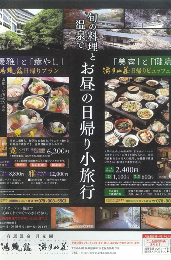 神戸本内で掲載させて頂いているのは、当館の日帰りプランです♪