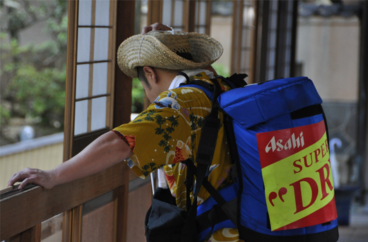 月光園では、游月山荘内にて、朝日スーパードライの樽を担いだ通称『アサヒマン』が登場致します。