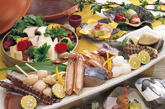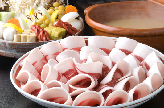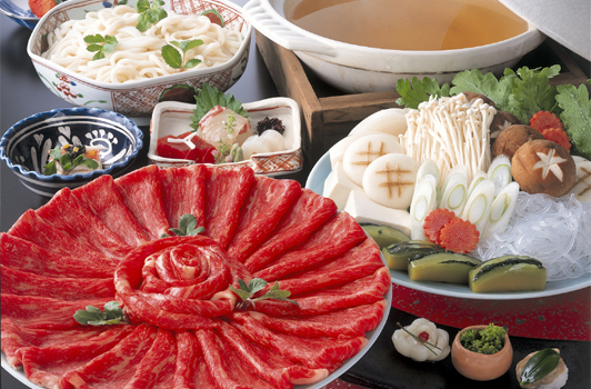 すき焼き、カニすき、ぼたん鍋、海鮮寄せ鍋、しゃぶしゃぶの中からお選びいただける、お得なコースメニューとなっております。