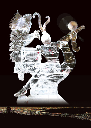会場内には氷で作られた彫刻作品や、実際に遊べるすべり台やかまくらなどたくさんの展示物がございます。