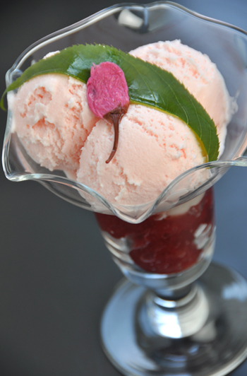 たっぷりの苺ジャムに爽やかな甘さの桜味のアイスと、