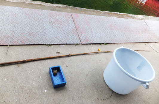 竿売り場にて1,000円で竿と餌、バケツを借りることができます。