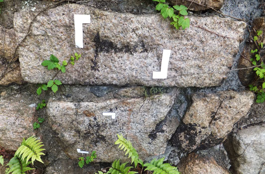 この石垣に貼られた「」などはマップが無いとなかなか見つけることが出来ないかもしれません。
