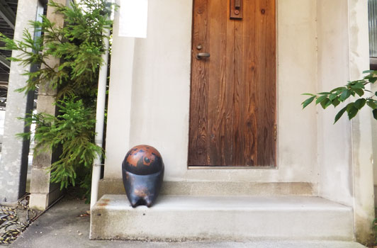 玄関前に佇んでる様子がなんとも可笑しいですね。