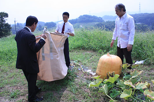 収穫しましたジャンボかぼちゃは、皆様の無病息災を祈願しまして