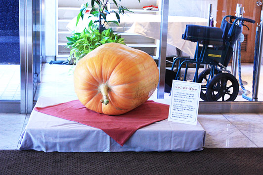 月光園へご宿泊の際は是非、このジャンボかぼちゃと一緒にお写真をお撮り下さいませ!