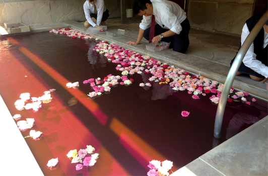 まずは一輪ずつ丁寧に、湯船に浮かべていきます・・・