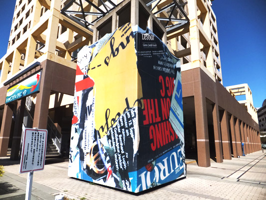 道中こんな英字コラージュ的な物体も発見しつつ兵庫県立美術館を目指します。