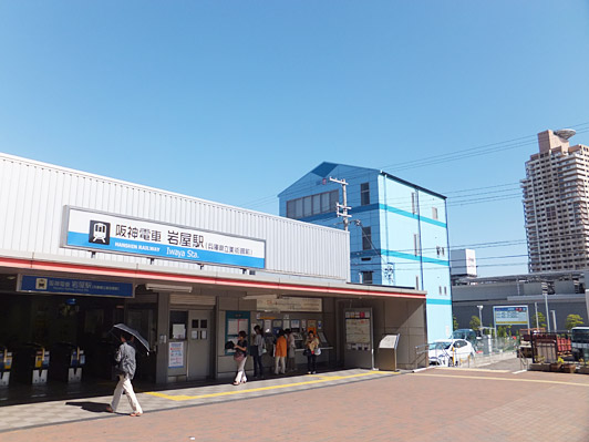 有馬温泉駅から電車で約40分、阪神岩屋駅に到着です。